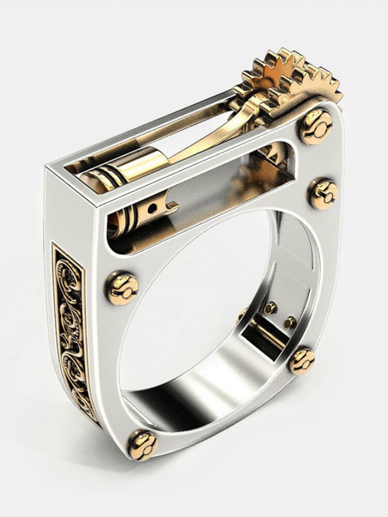 1 Ks Trendy Punk Creative Mechanical Shape Alloy Ring