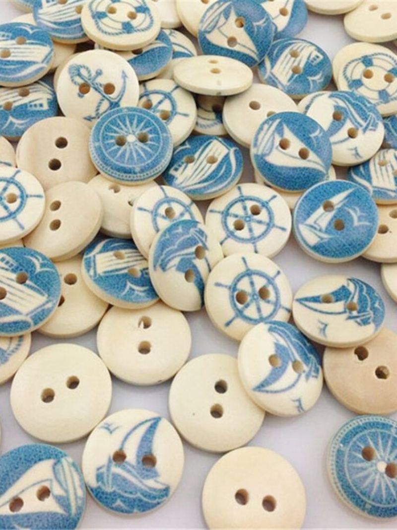 100 Ks 15mm Dřevěných Knoflíků V Námořnickém Stylu Diy Ruční Šicí Materiály