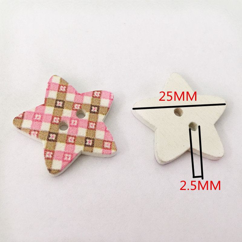 100 Ks 25mm Dřevěné Pětiúhelníkové Malované Knoflíky Pletení Šití Diy Materiály
