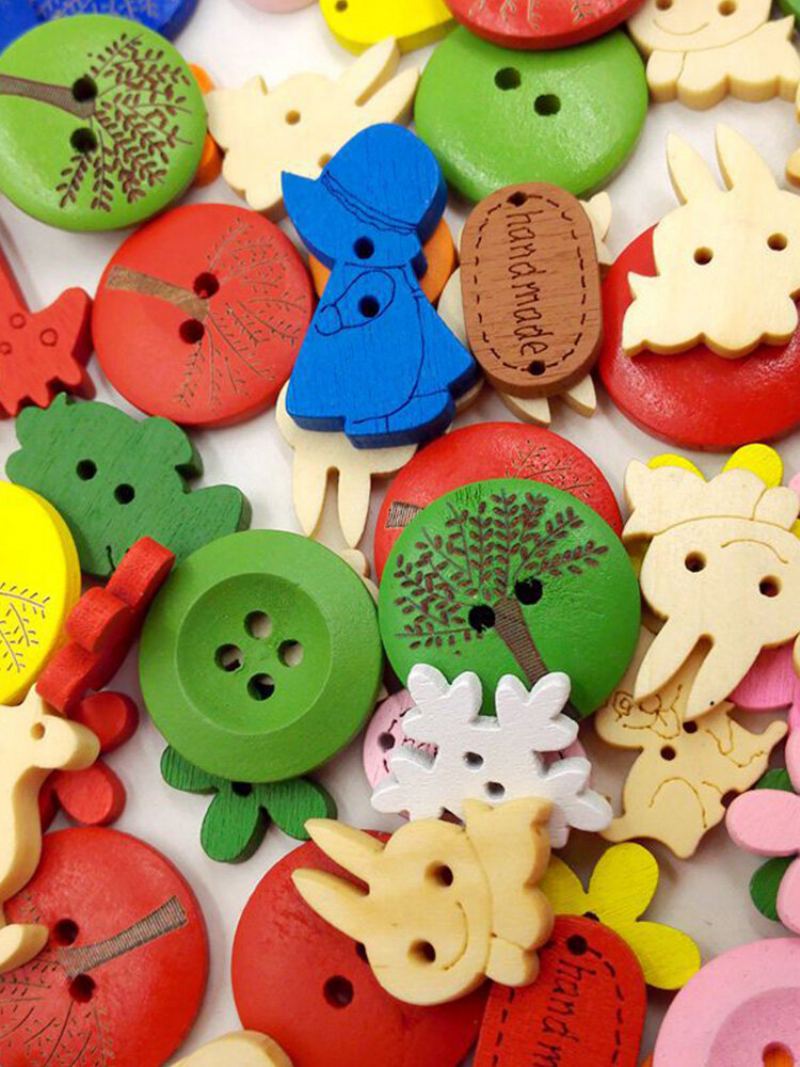 100ks Kreslených Knoflíků Diy Ručně Vyráběných Dřevěných Dekorativních Malířských Materiálů