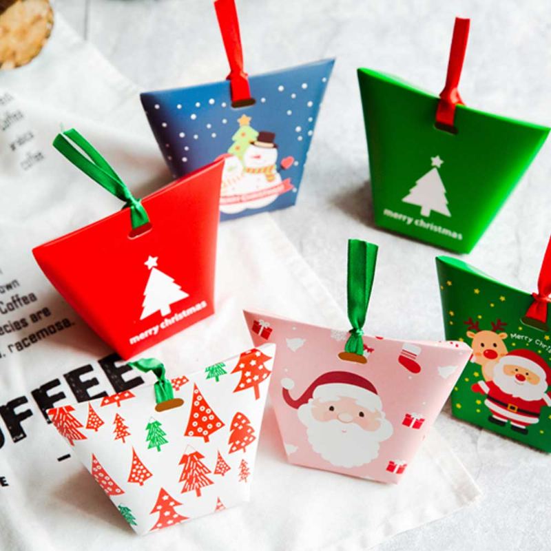 * Papírová Bonboniéra Je Potištěna Vánočními Vzory Santa Clause, Jelena Losa, Sněhuláka, Vánočního Stromku Atd. Pro Přidání Vánoční Atmosféry .