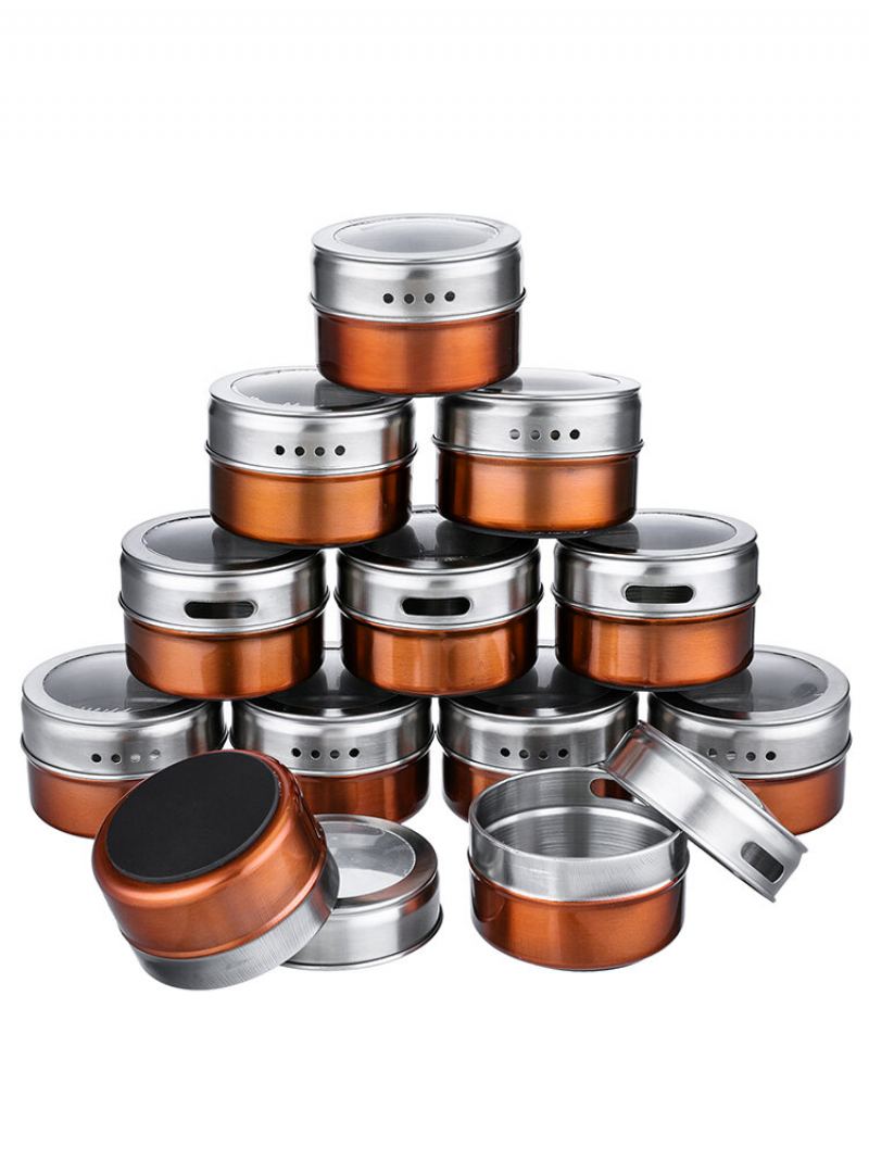 12ks/sada Magnetické Dózy Na Koření Nerezové Zavařovací Sklenice Průhledné Víko Bbq Zlatá