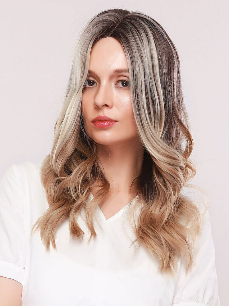 17palcová Smíšená Zlatohnědá Syntetická Paruka Nadýchaná Měkká Středně Dlouhá S Kudrnatými Vlasy