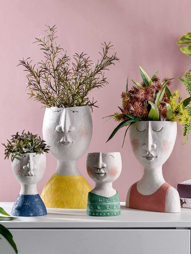 1pc Umělecký Portrét Květináč Váza Socha Pryskyřice Lidská Tvář Rodinný Ručně Vyráběný Zahradní Úložný Prostor Květinová Aranžmá Domácí Dekorace