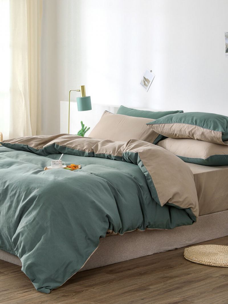 2/3ks Zelená Ab Jednostranná Jednobarevná Pohodlné Povlečení Sada Povlaků Na Přikrývku Povlak Na Polštář Dospělí Přikrývek Na Postel Pro Dospělé
