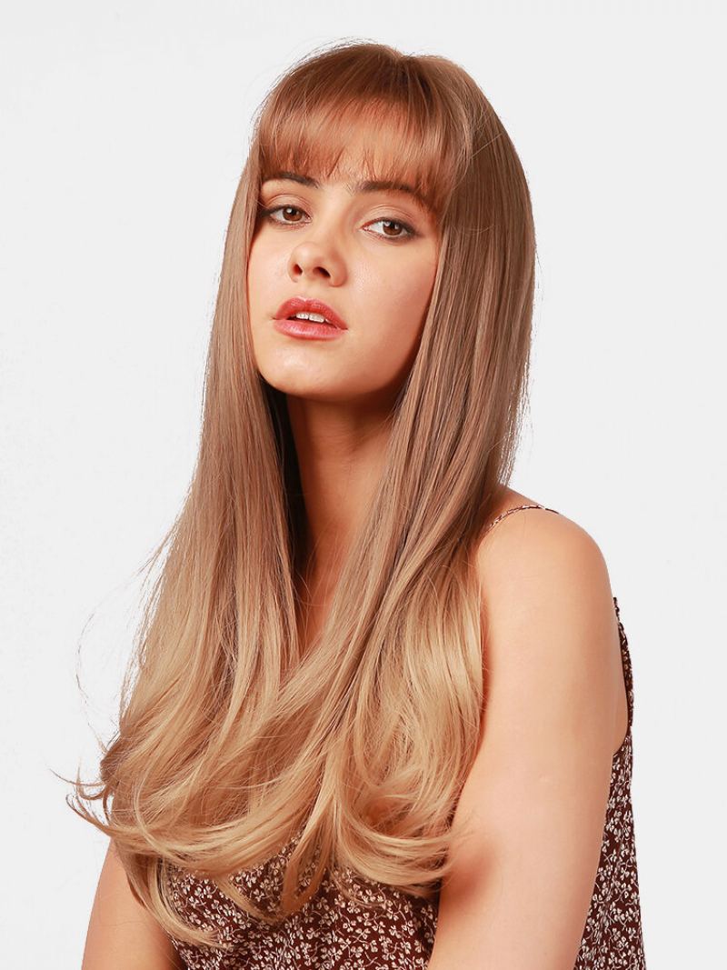 22 Palcová Zlatá Hnědá Dlouhé Kudrnaté Vlasy Air Bangs Celohlavá Krycí Paruka Prom Denní