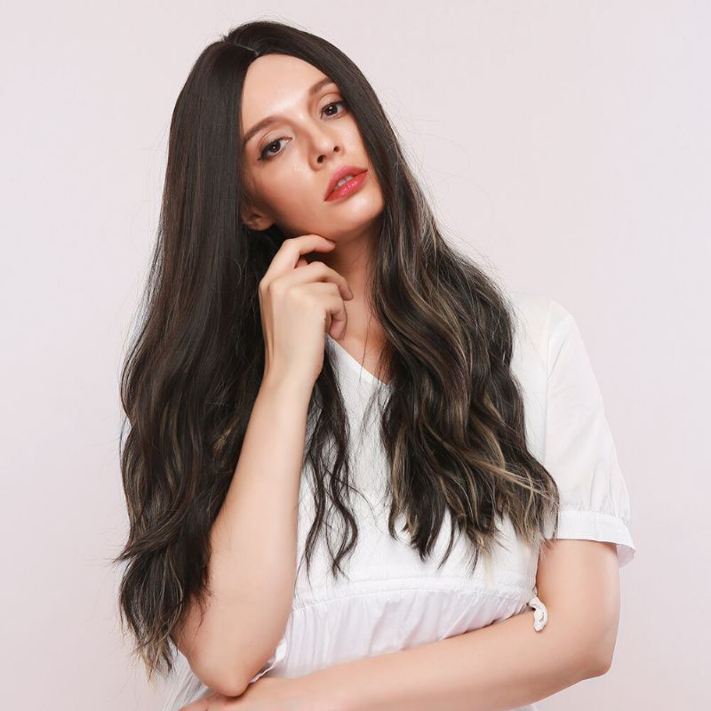 26palcová Černá Hnědá Syntetická Paruka Poddajná Prodyšná Z Přírodních Kudrnatých Dlouhých Vlasů