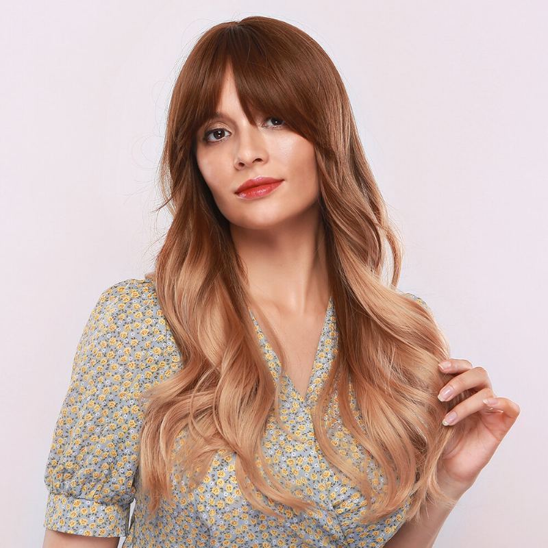 28palcová Syntetická Paruka Se Zlatým Přechodem Temperament Úhledná Hnědá S Dlouhými Kudrnatými Vlasy