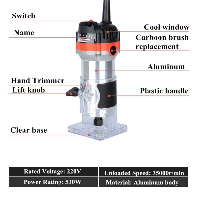 35 000 Ot./min. 530 W 1/4 Palcový Elektrický Ruční Zařezávač Dřevo Laminátor Dlaňový Frézovač Truhlář Dřevoobráběcí Nástroje