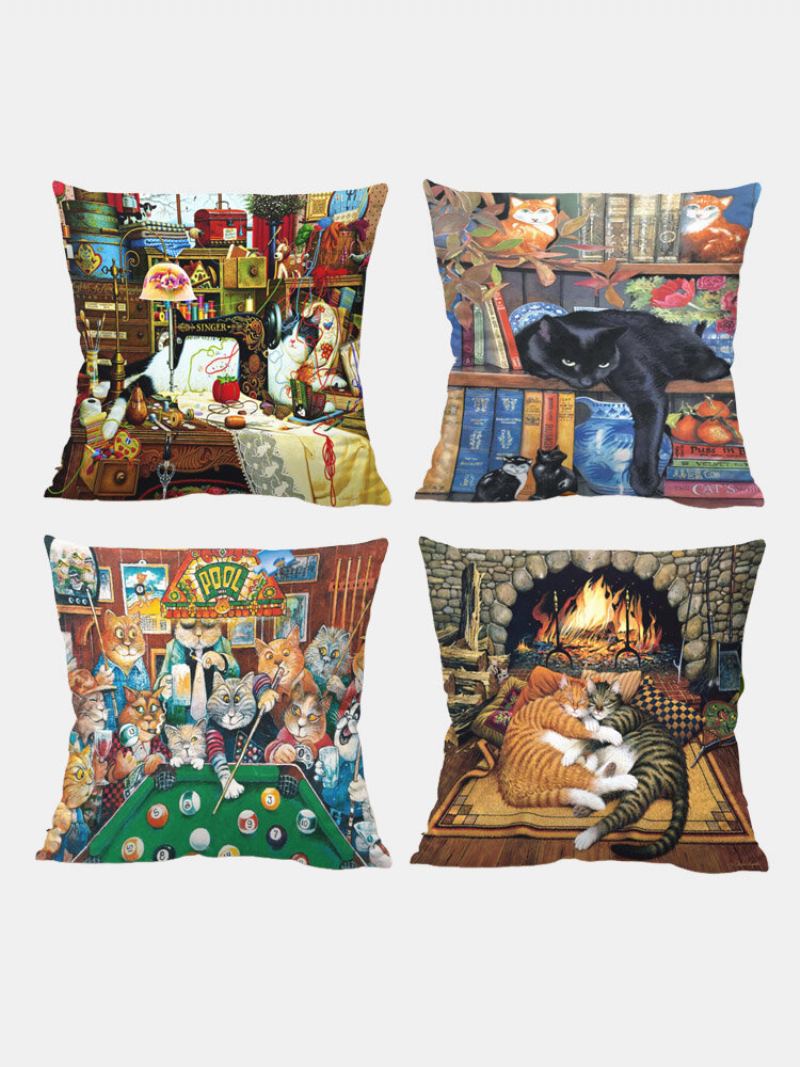 4 Ks Retro Styl Kočky Povlečení Bavlna Povlak Na Polštář Domácí Pohovka Art Decor Přehoz Na Na