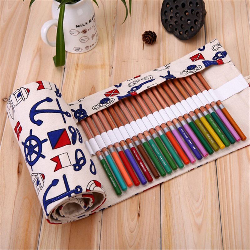 48/72 Otvory Sloty Loď Cestovní Deník Plátno Velké Pouzdro Na Tužky Roll Bag Školní Potřeby