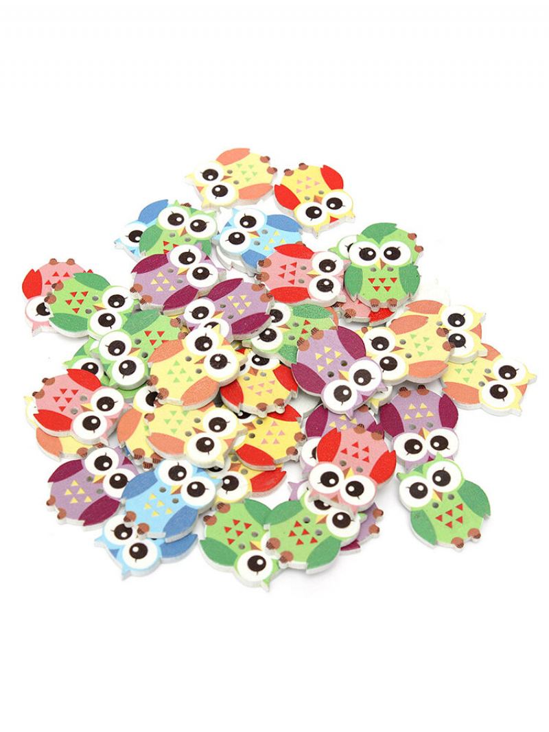 50 Ks Vícebarevná Sova Zvířecí Dřevěné Knoflíky 2 Otvory Na Šití Scrapbookingový Materiál