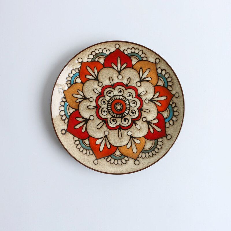 8palcový Evropský Styl Ručně Malovaný Barevný Talíř Keramický Dezertní Podnos Jedinečná Sada Na Večeři