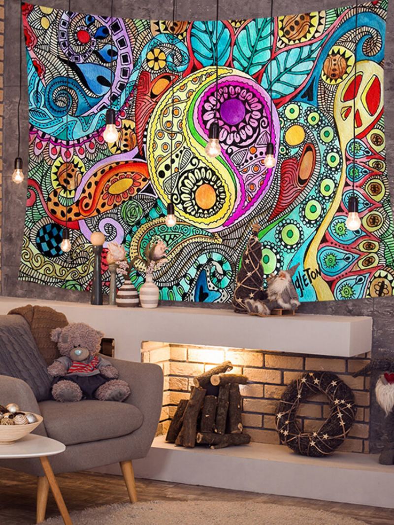 Barevné Abstraktní Taiji Diagram Tapisérie Plážový Ručník Na Jógu Obývací Pokoj Art Decor