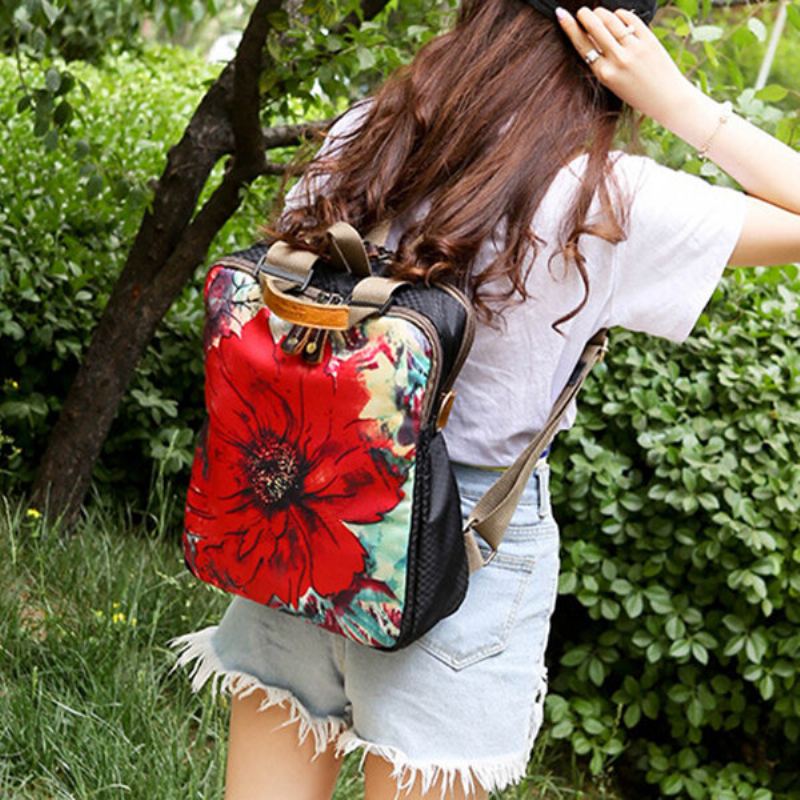 Brenice Hovězí Kůže National Flower Kabelky Multifunkční Tašky Přes Rameno Batoh