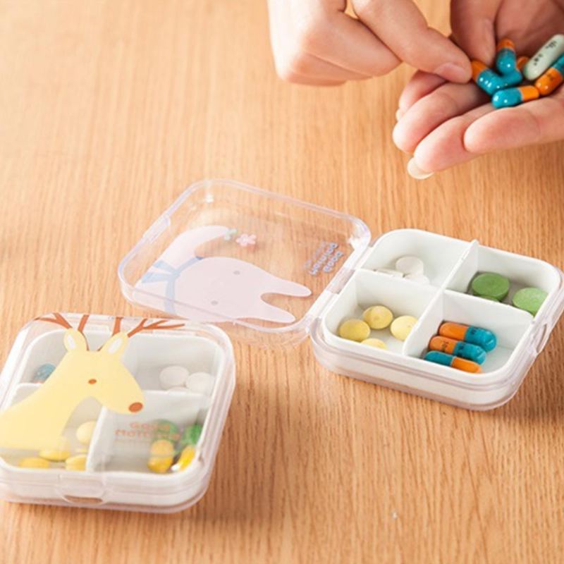 Cartoon Animal Cute Pill Box Nejlepší Cestovní Obal Na Pilulky Pro Každodenní Použití 4 Mřížky