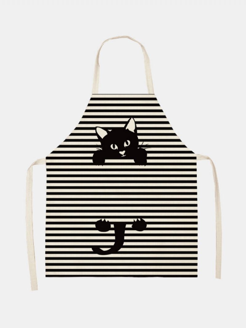 Černá Kočka S Pruhovaným Vzorem Čištění Barevné Zástěry Domácí Vaření Kuchyňská Zástěra Kuchařka Bavlněné Prádlo Bryndáčky Pro Dospělé