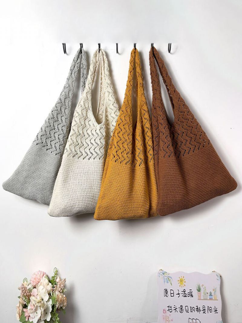 Charmkpr Dámské Pletení Móda Duté Neformální Velkokapacitní Kabelka Taška Přes Rameno