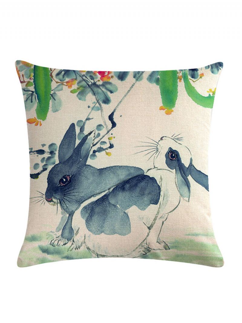 Čínský Akvarelový Potisk Králík Povlečení Bavlněný Potah Na Polštář Domácí Pohovka Kancelářský Sedák Povlaky Na