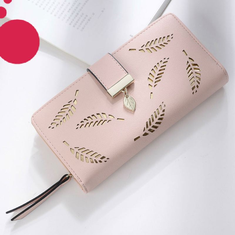 Dámská Dlouhá Peněženka Pu Kožená Na Zip Na Výměnu Peněženky S Dutými Listy Card Bag Neformální Kabelka