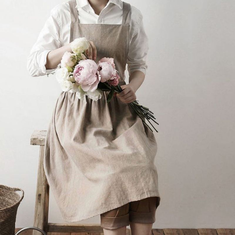 Dámská Elegantní Zástěry Ze Seprané Bavlněné Skládané Sukně Ve Skandinávském Stylu