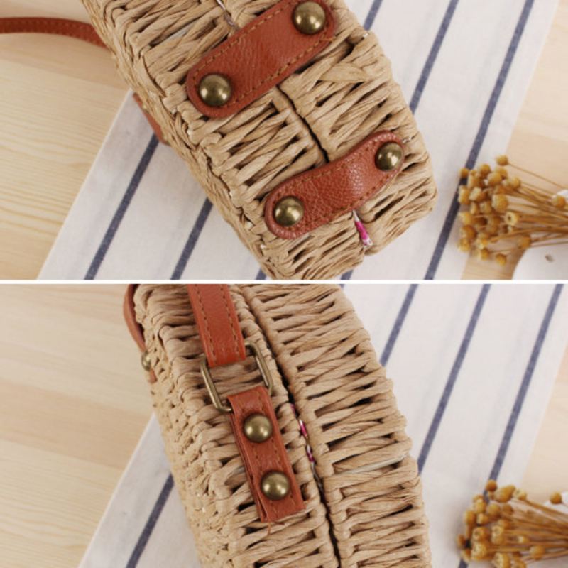 Dámská Kulatá Crossbody Taška Z Tkané Slámy Pevná Plážová