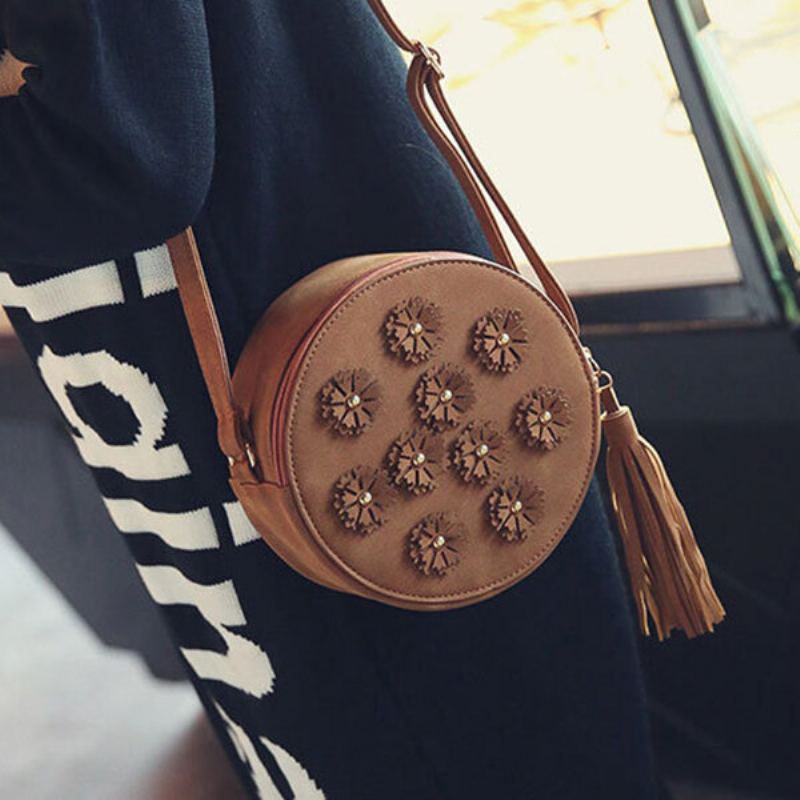 Dámská Květinová Taška Přes Rameno Z Pu Kůže Kulatá Crossbody