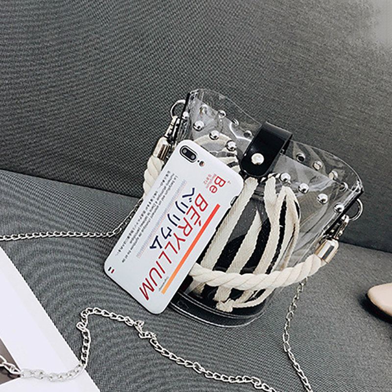 Dámská Nákupní Průhledná Kabelka S Řetízkem Plátěná Nýtovaná Taška