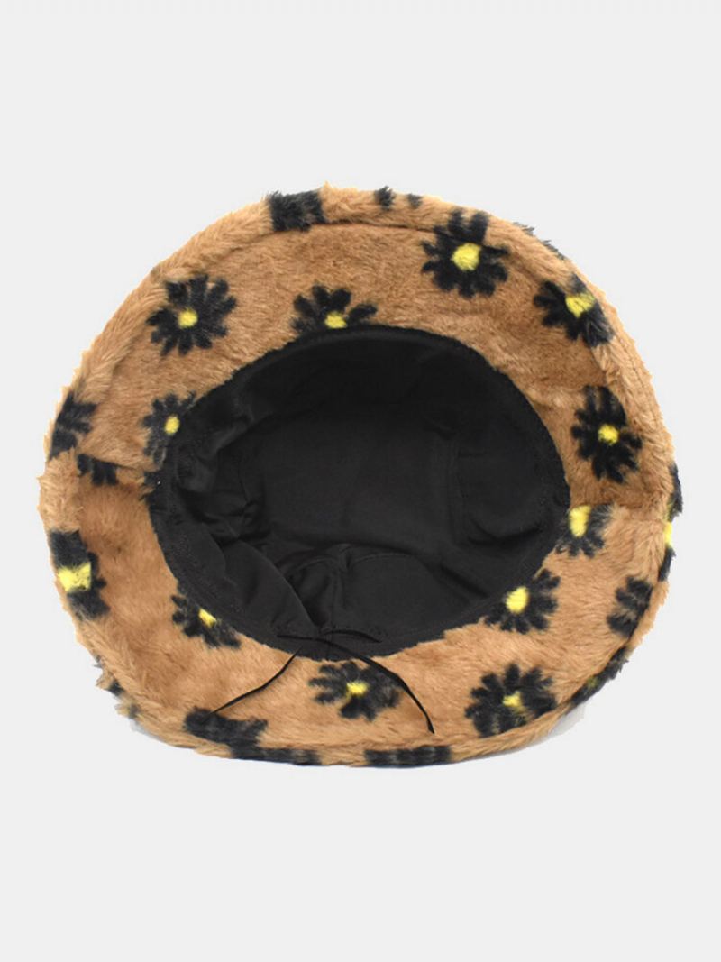 Dámské A Pánské Kožešina Z Jehněčí Vlny Měkká Hřejivá Plus Silná Ležérní Univerzální Roztomilý Klobouk Daisy Květinový Vzor