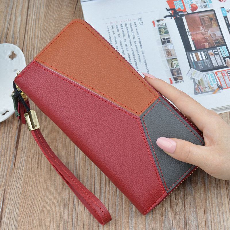 Dámské Barevné Prošívání Multi-slot Dlouhé Peněženky Držák Na Karty 5.5palcový Taška Na Telefon