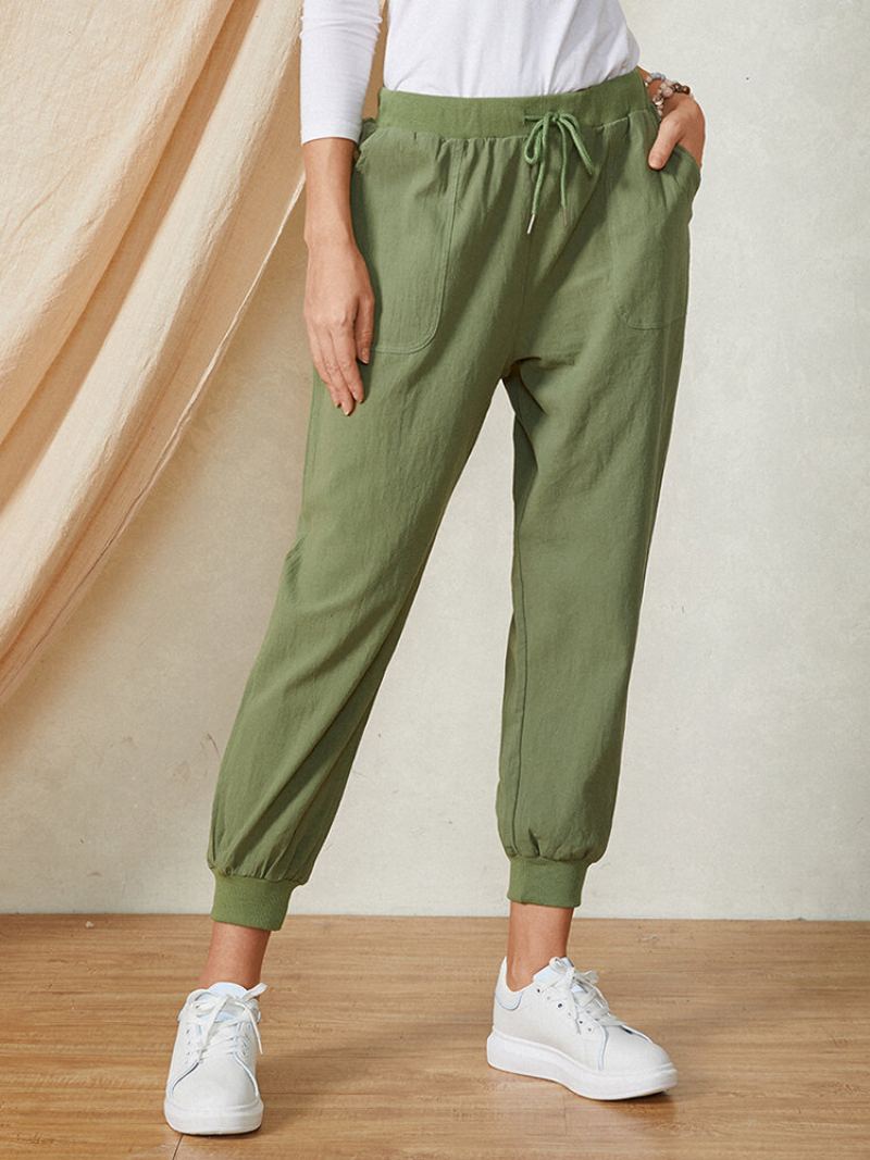 Dámské Jednobarevné Ležérní Kalhoty S Elastickým Pasem Se Šňůrkou