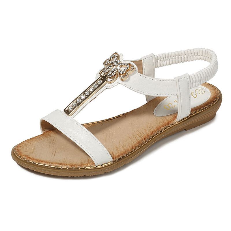Dámské Rhinestone Bowknot Elastická Páska Slip On Flat Sandály