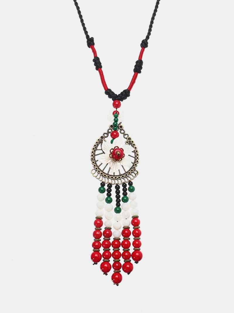 Dámský Etnický Náhrdelník Střapec Korálky Květina Retro