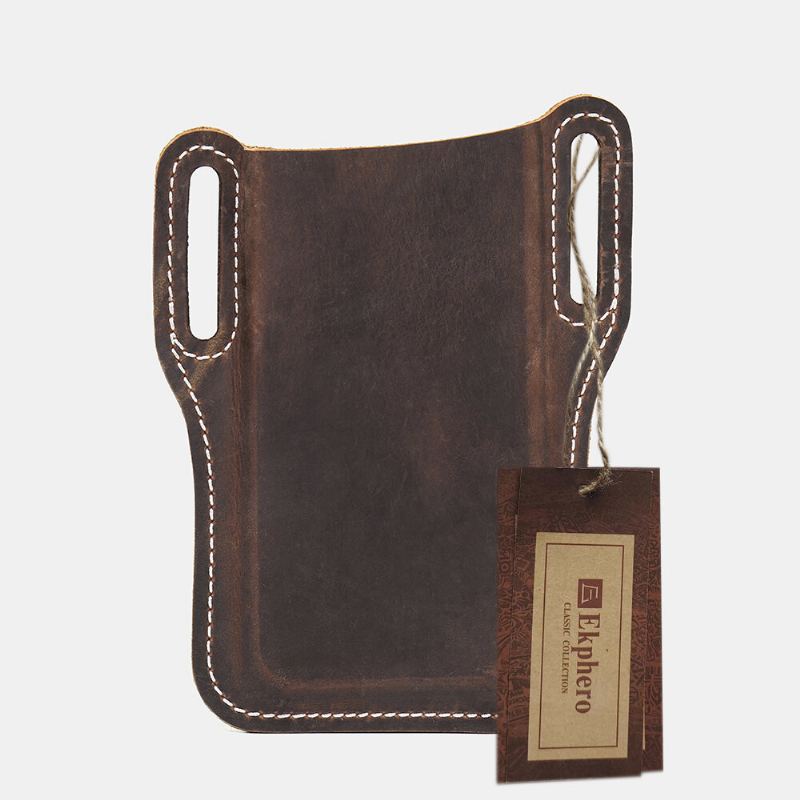 Ekphero Men Originální Kožené 7.2 Palcové Edc Retro Krátké Pouzdro Na Mobilní Telefon Na Opasek