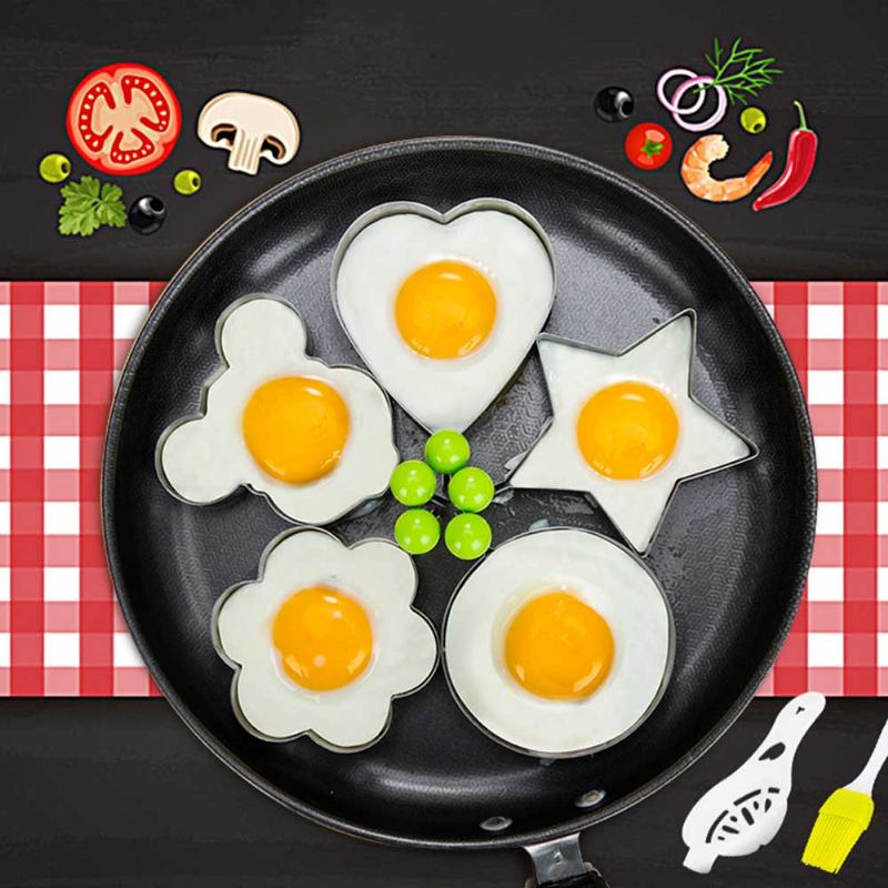 Forma Na Kroužky Na Smažená Vejce Speciálně Navržená Pro Vaření Vajec Nebo Palačinek, Vytvořená Tak, Abyste Si Sami Vyrobili Jednoduché Diy, Vyrobená Z Prvotřídní Potravinářské Nerezové Oceli + Pp Rukojeť, S Pěti Různými Druhy Tvaru, Takže Si Můžete Vyrobit Vajíčka A Palačinky Různých Tvarů.