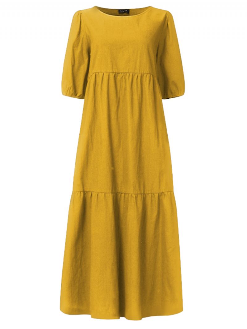 Jednobarevné Dámské Šaty S Nadýchanými Rukávy A Výstřihem Do O