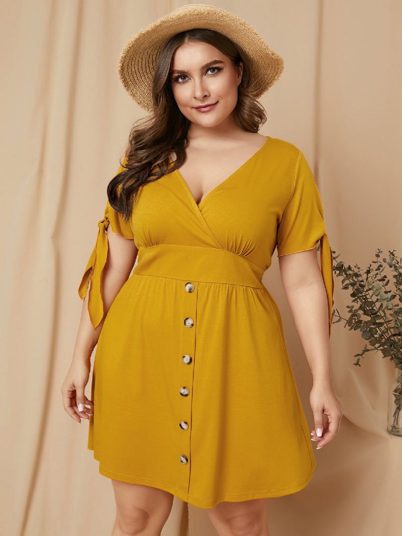 Jednobarevné Knoflíkové Neformální Midi Šaty Větší Velikosti