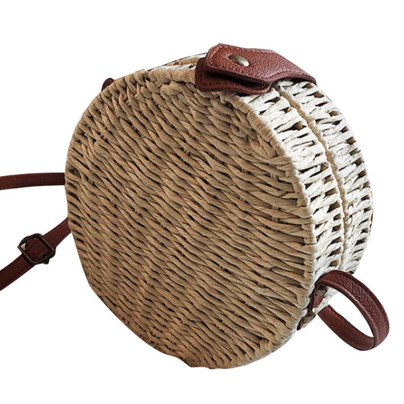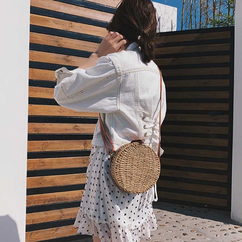 Jednoduchá Efektní Slaměná Kulatá Taška Přes Rameno Pro Dámskou Plážovou Dovolenou V Národním Stylu Dámská