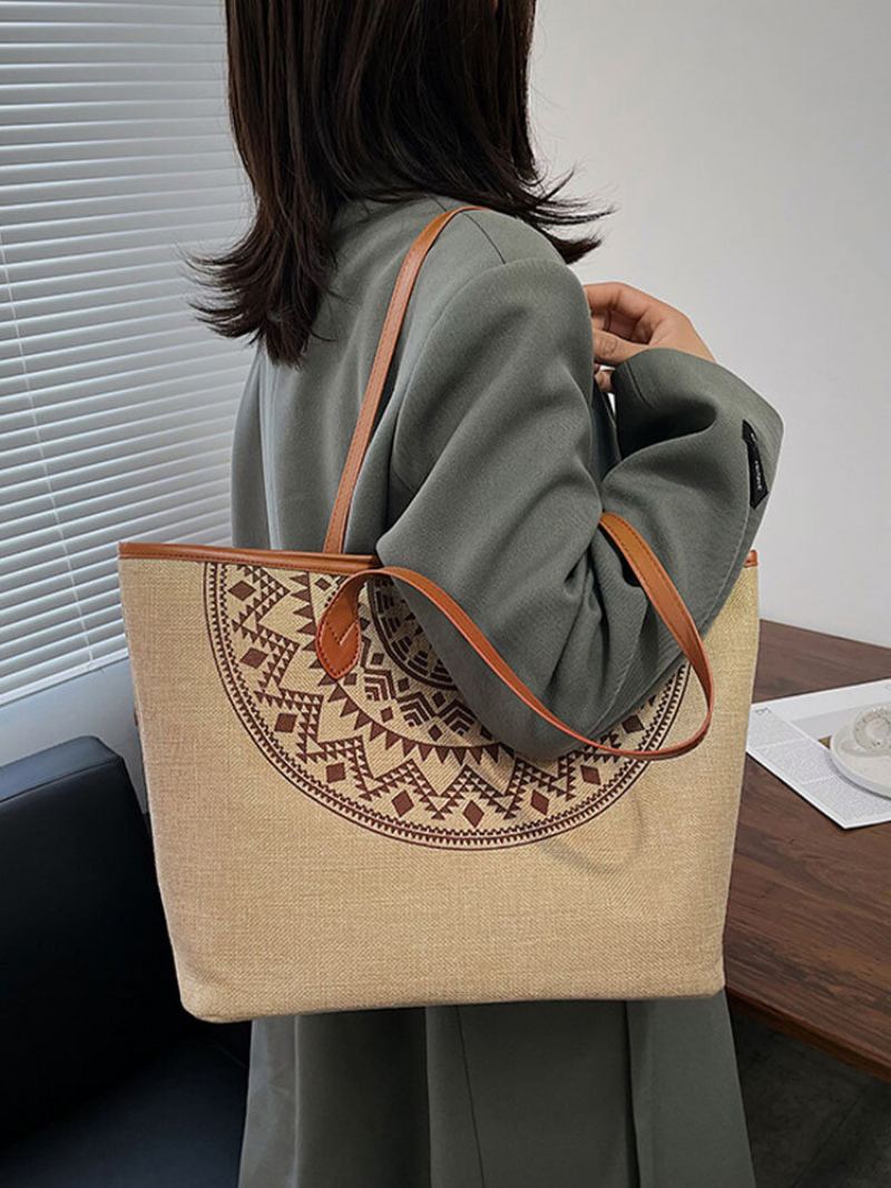 Joseko Dámská Plátěná Móda Jednoduchý Geometrický Potisk Velkokapacitní Kabelka Taška Přes Rameno