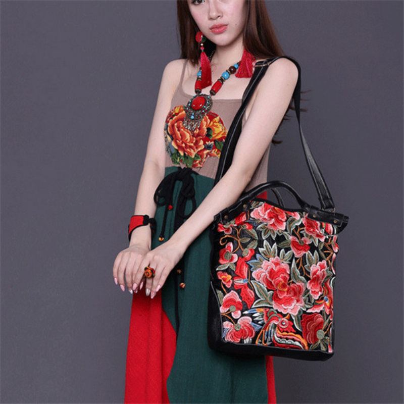 Kabelka Přes Rameno V Národním Stylu S Květinovým Vzorem Crossbody