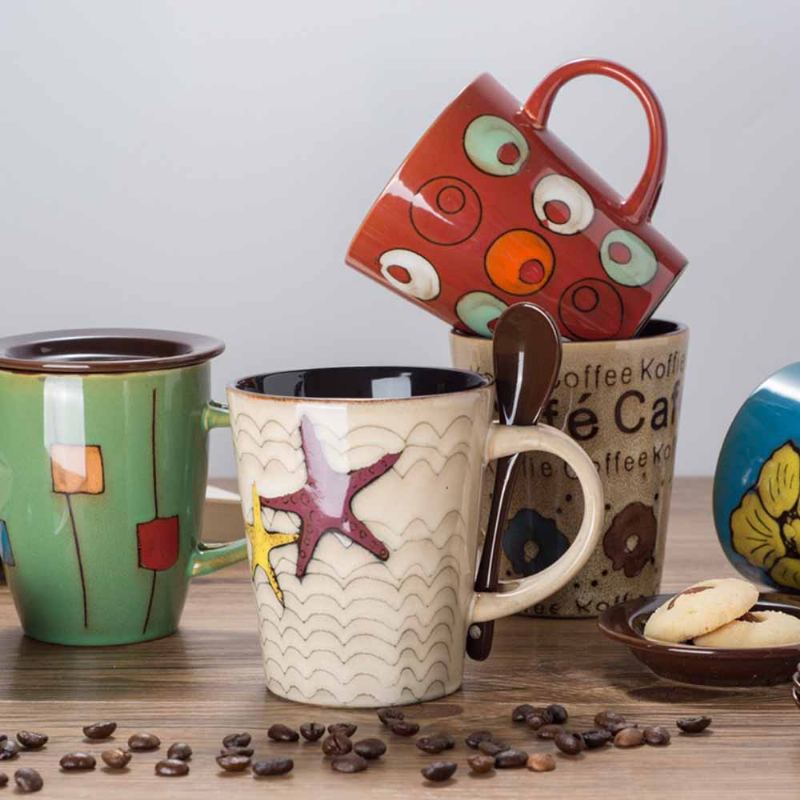 Vyrobeno Z Keramiky, Aby Byla Zajištěna Bezpečnost Při Pití A Znovu Použitelná, S Víkem A Lžičkou, Aby Byla Ideální Na Kávu, Mléko, Čaj A Vodu, Kreativní Design S Kreslením Od Ruky, Který Je Vhodný Pro Doma I V Kanceláři A Také Jako Dárky A Dárky