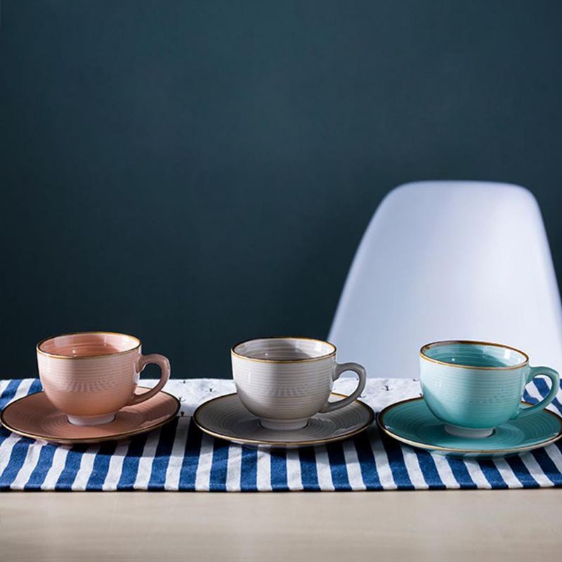 Keramický Šálek Na Vodu S Glazurou S Náčrtem Pro Mléko Káva Voda Japonský S Podšálkem Sada Šálků Na Čaj Dvoudílných