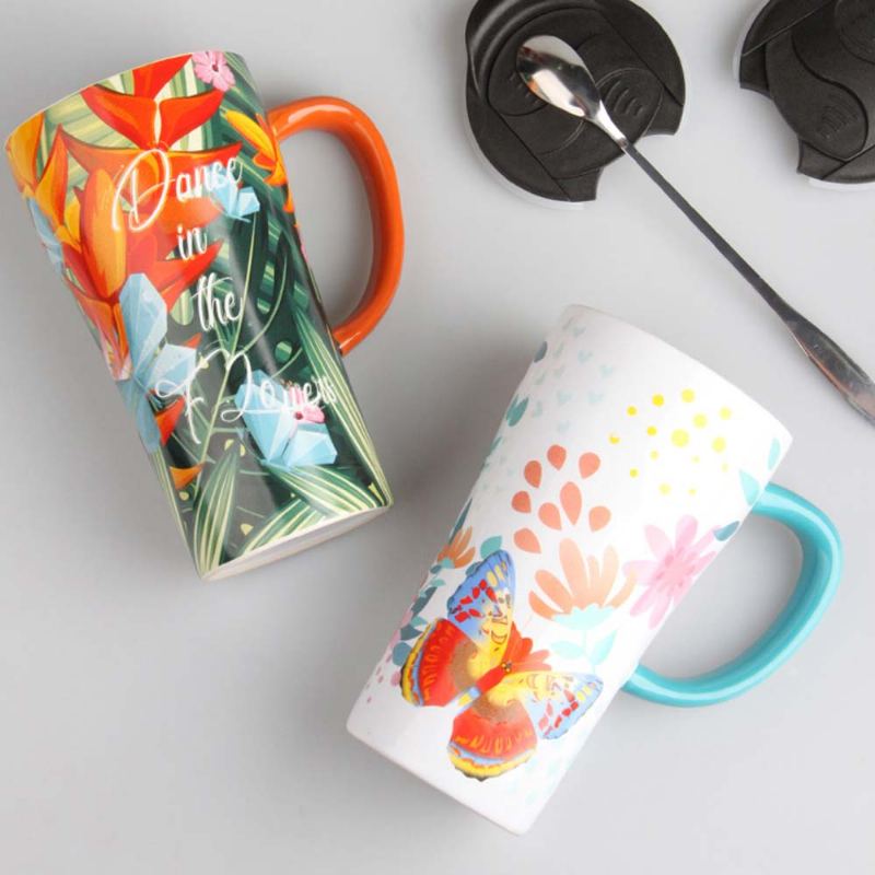 Keramický Šálek S Víčkem Lžíce Jednoduchý Na Severskou Snídani Velkokapacitní Na Kávu Mark