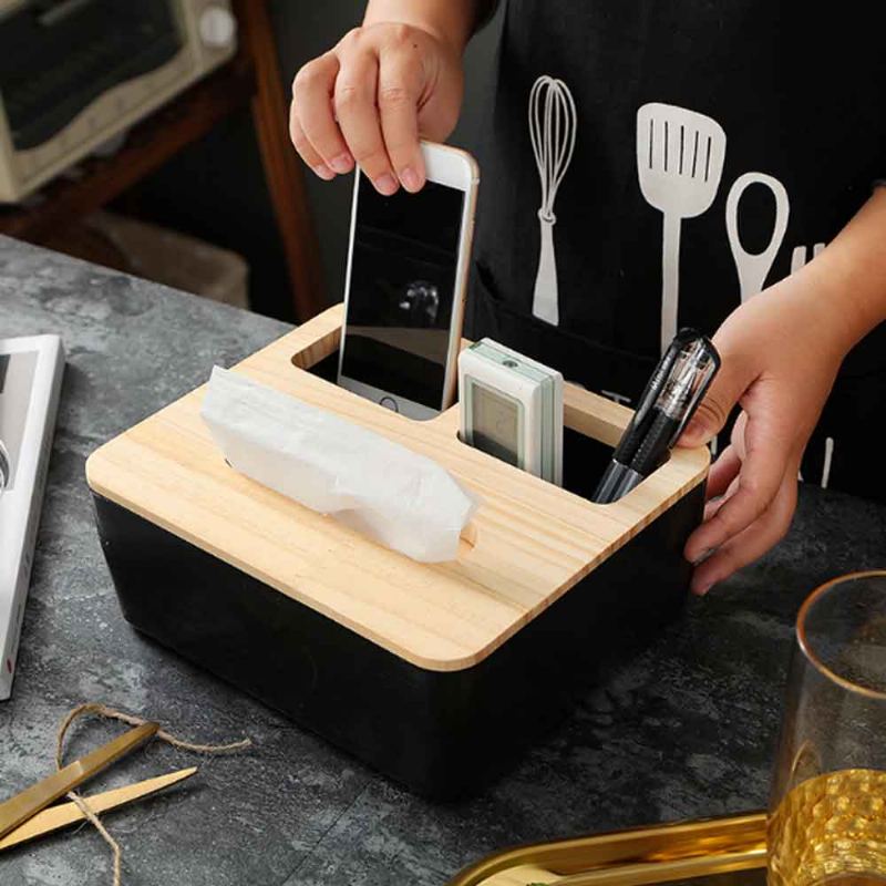 Krabička Na Ubrousky Dřevěný Kryt Držák Na Mobilní Telefon Makeup Bavlněná Krabice Palubní Černá Na Do Obývacího Pokoje Stolní Na
