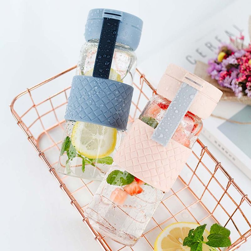 Kreativní Průhledný Skleněný Hrnek Svěží A Krásný Přenosný Pro Studenty Silikonový Kelímek Z Kůže Zrnitého Skla