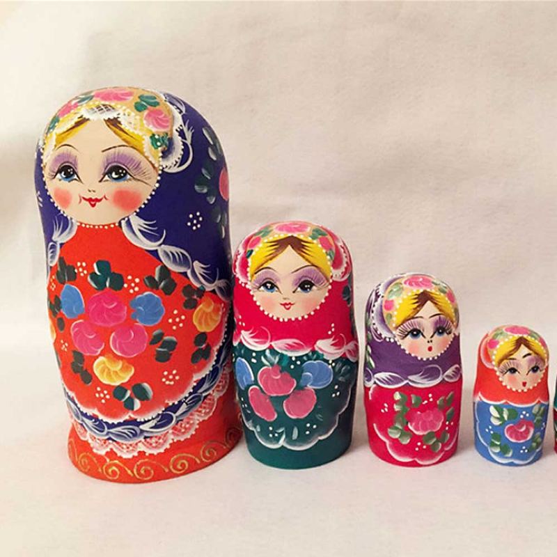 Ruská Matrjoška, Vyrobená Z Eukalyptu, Je Malovaná Různými Velikostmi Dívek, S Výrazným Regionálním Stylem, Je To Ruční Ruční Práce Jedinečná Pro Rusko, Protože Materiály Jsou Vyrobeny Převážně Z Eukalyptu , Místo, Kde Jsou Panenky, Jsou Uzly, Ale To Neovlivňuje Vzhled