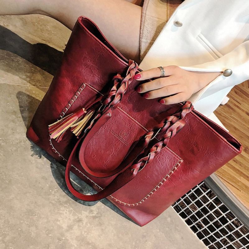 Módní Dámská Taška Olej Vosk Skin Wild Big Bag Velkokapacitní Tassel Tote Bag Žena Přenosná Přes Rameno