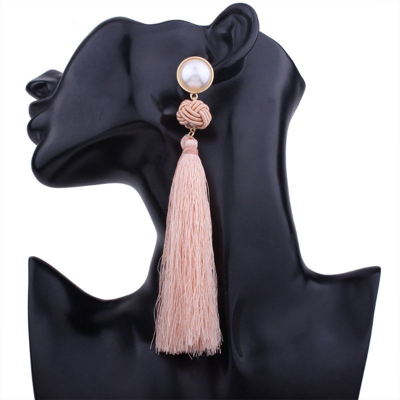 Módní Perlové Střapce Visací Náušnice Etnické Barevné Dlouhé Dárek Pro Ženy