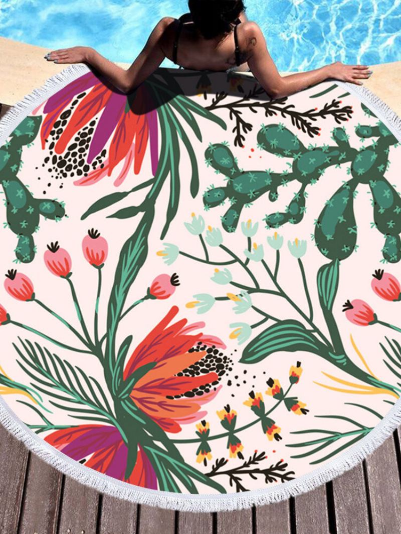 Mramorové Listy Z Mikrovlákna Tropické Rostliny Plážový Ručník Kulatý Velký Na Jógu Se Střapcem Plážová Podložka Potah Na Deku
