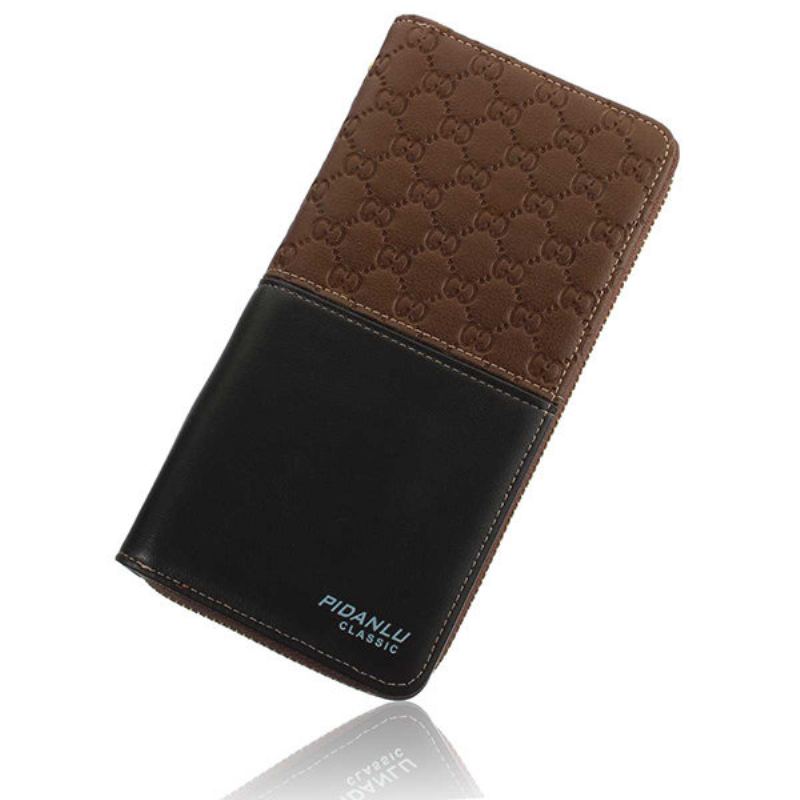 Muži Kontrastní Barva Vintage Dlouhý Zip Ležérní Peněženka Karty Mince Tašky